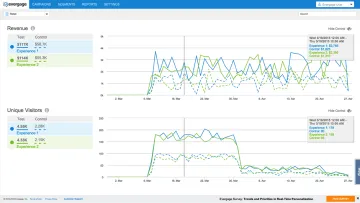 Você também pode testar seu conteúdo para diferentes públicos para otimizar as taxas de conversão. A Evergage oferece personalização web em tempo real para mais de 500 milhões de visitantes e usuários de rede de mais de 120 organizações, incluindo Rue La La, Publishers Clearing House, Intuit QuickBase, Endurance International Group e muito mais.